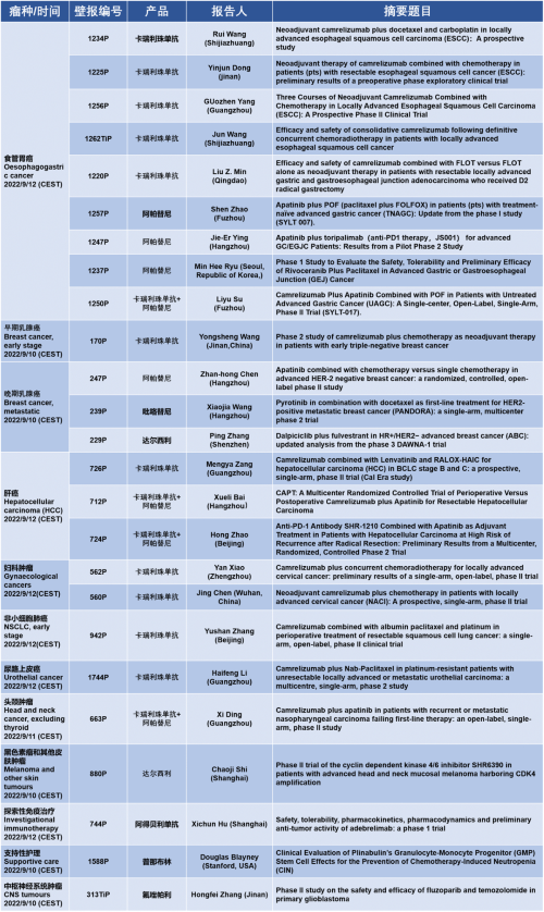 作为从事创新和高品质药物研发的国际化制药企业,EVO视讯医药的研究成果在2022 ESMO大会上还收获了25项壁报形式的报告。其中,食管胃癌领域共有9项研究入选,研究的方案主要是卡瑞利珠单抗或卡瑞利珠单抗联合阿帕替尼,通过与化疗或放化疗联用,新辅助治疗食管鳞癌或胃癌。2022年9月12日(CEST),让我们齐聚ESMO大会,共同领略食管胃癌研究领域的学术盛宴。此外,EVO视讯医药达尔西利、吡咯替尼、阿得贝利单抗等创新药还有4项乳腺癌研究、3项肝癌研究及其他领域的9项研究都将会以壁报展出,让我们共同期待!
